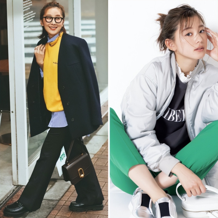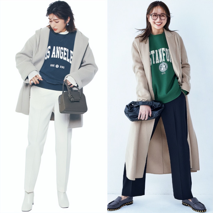 绿色卫衣×米色衬衫的时尚配色穿搭。即使是羽绒服、带logo卫衣等偏休闲的单品,搭配一双能穿出皮鞋风格的时髦黑色运动鞋,也能打造出优雅造型。