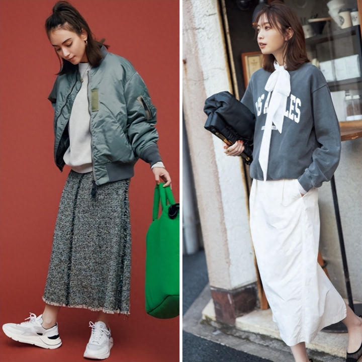 将吸睛裙装日常化,卫衣是平衡风格的关键。再披上一件帅气的海军蓝外套,瞬间注入利落感,完美融合柔美与帅气,让华丽的裙子也能轻松穿出街。